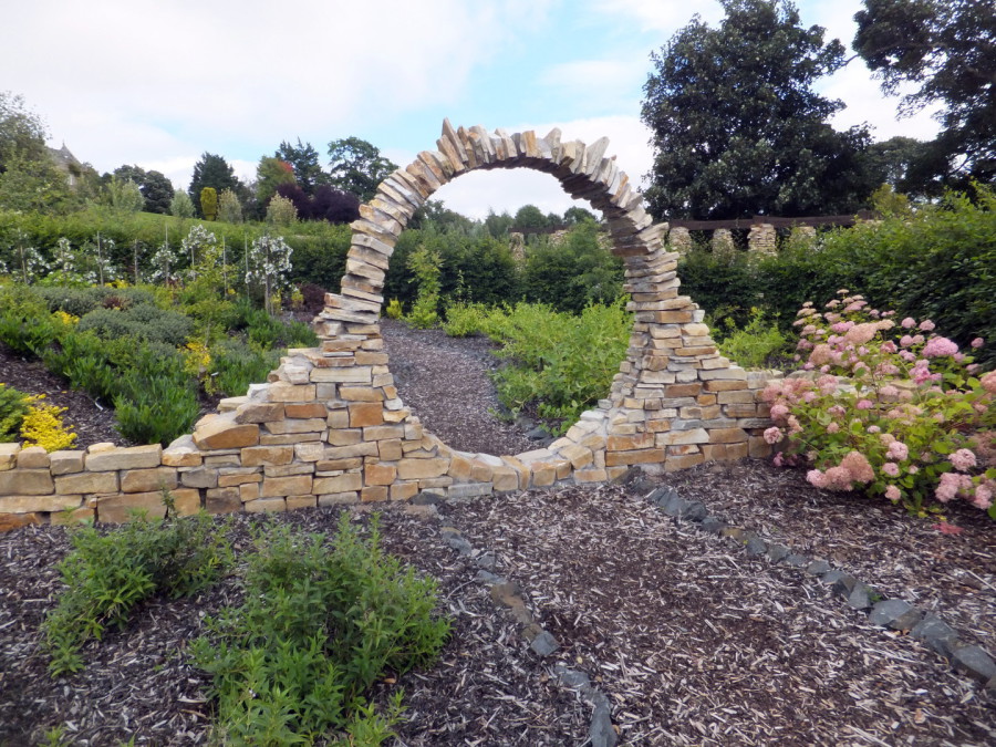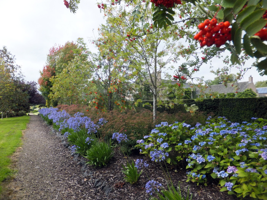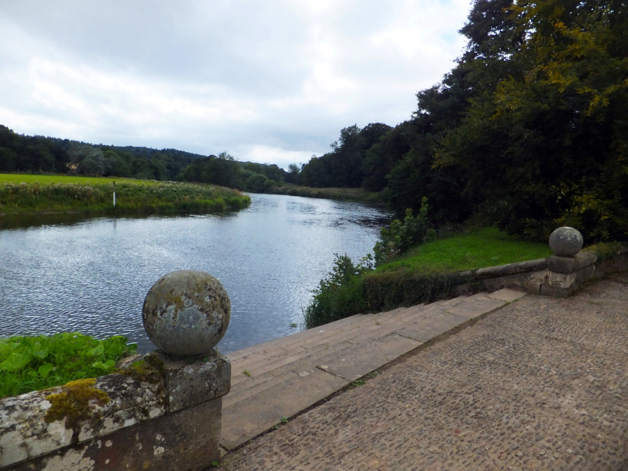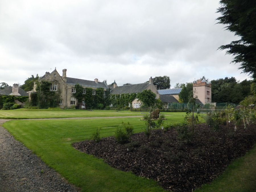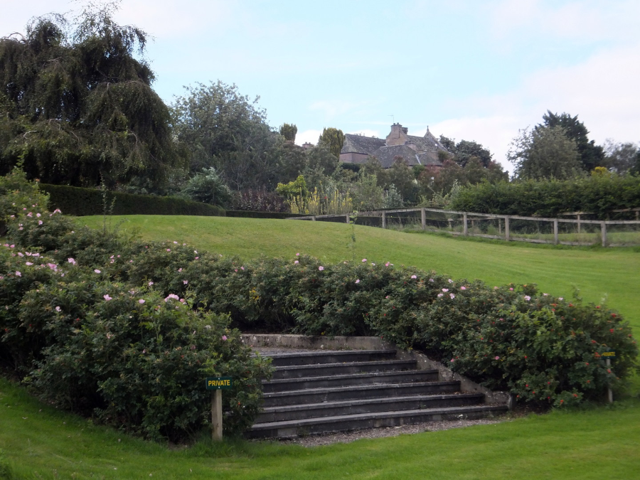The fine gardens include a rose garden, herbaceous shrub borders, a water garden of islands linked by bridges, the Dene Garden, the Garden of Persistent Imagination, the Compass Garden and an arboretum. There are great views over the River Teviot.
