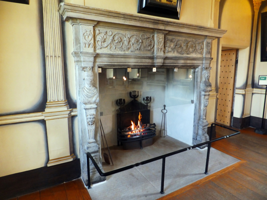 The kitchen is in a vaulted chamber in one block with a grand stair to the main chambers on the first floor. Many of the rooms within the lodging have been restored and furnished in 17th-century style. Painted decoration survives in the High Dining Room, and the both it and the Drawing Room have grand carved fireplaces. The bedroom and study are both atmospheric.