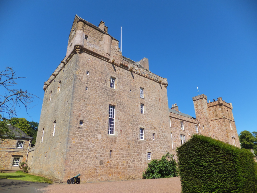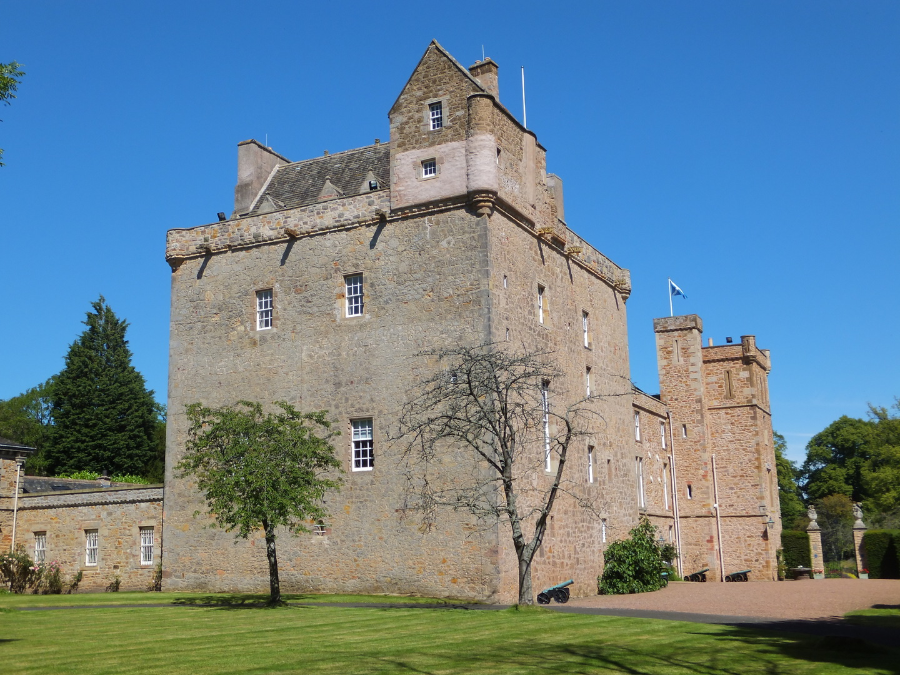 A handsome building in fine grounds and gardens, Lennoxlove (originally known as Lethington) incorporates an altered L-plan tower house of three storeys and an attic. The parapet has open rounds. The tower incorporates work from the 14th century, and probably earlier. Many of the windows have been enlarged, and the wallheads of the tower have been heightened and a two-storey caphouse added. A three-storey range projects from the tower, and there is another extension from the 17th century.