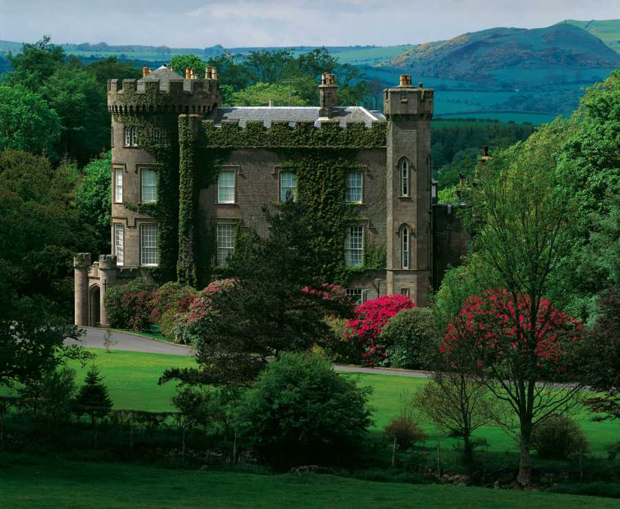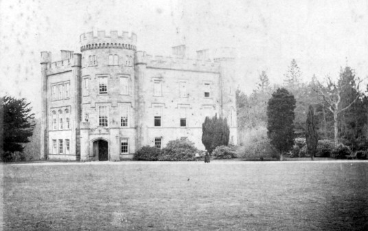 storey projecting on corbelling. The castle was much extended and remodelled in the Gothic style in 1841, and is set in an estate of 140 acres.
